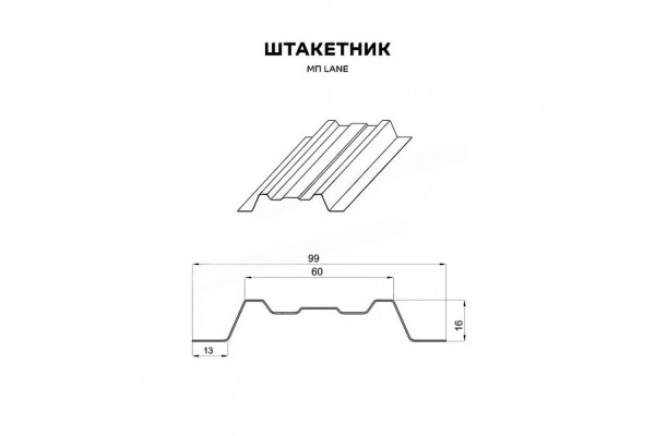 - Код товара: Штакетник металлический МП LАNE-T 16,5х99 0,4мм о-образный